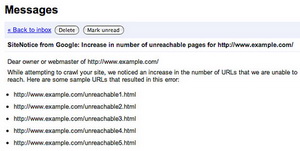 Google объявил о том, что теперь он будет присылать вебмастерам уведомления в Google Webmaster Tools о каких-либо ошибках, возникших при сканировании их сайтов (например, если Googlebot не может загрузить страницу). Подобные извещения будут называться «SiteNotice», и Google будет рассылать их при большом количестве ошибок.